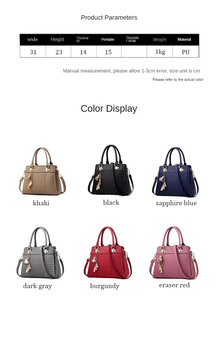 The solid color and tassel decoration make this bag a stylish accessory that complements any outfit.
