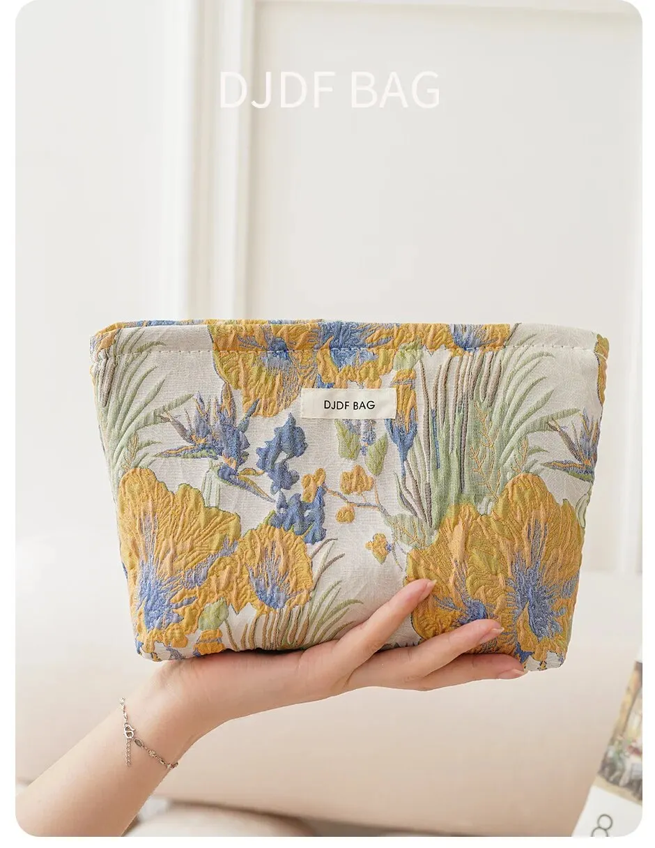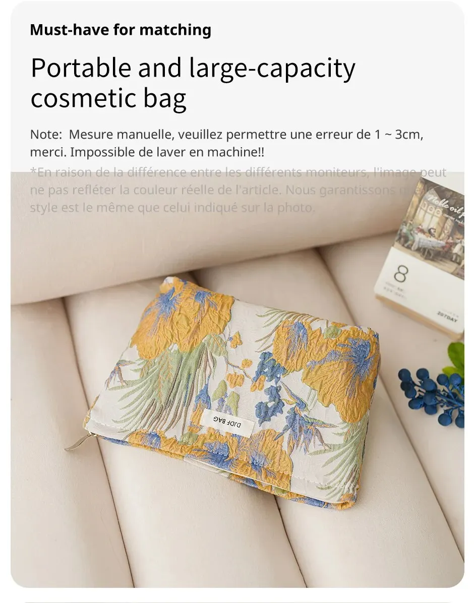 This women's makeup bag offers a generous storage space, perfect for keeping your beauty essentials organized and within reach.
