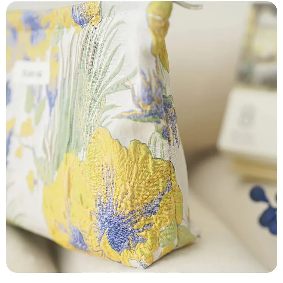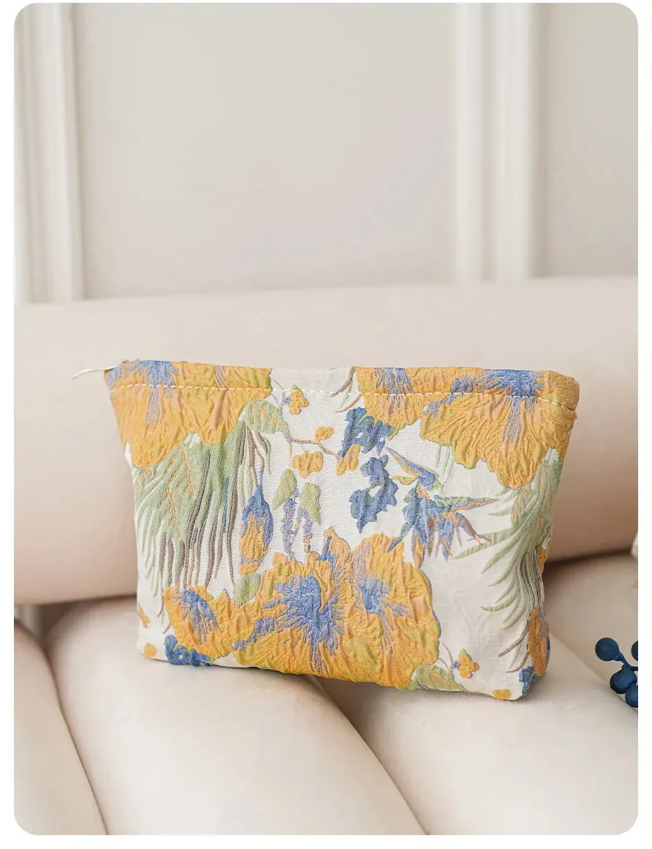 The floral canvas design adds a touch of elegance and femininity, making it not only a practical item but also a stylish accessory.